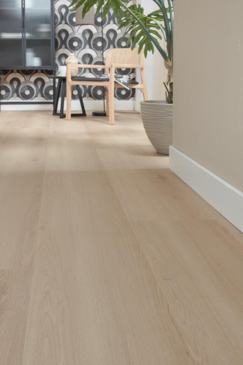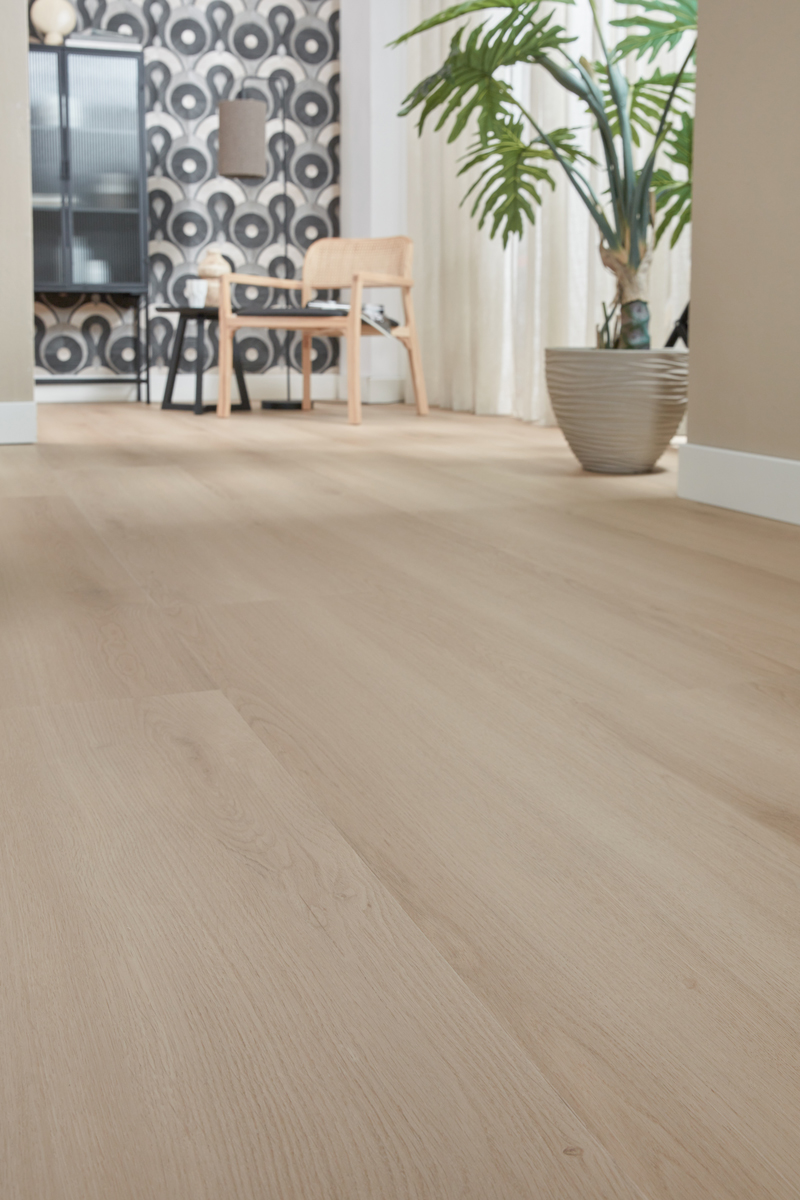 This wide plank Vinyl floor is not only a sight to behold, but also made to withstand a knock or two. Thanks to the sturdy top layer of 0.55 mm, it is even suitable for intensive commercial use. The MEGAMAT finish gives the floor a natural look without a disturbing shine. The micro bevel around each plank makes the generous XXL dimensions stand out even more. And with a thermal resistance of only 0.019 m²K/W, this luxurious Vinyl floor is perfectly suited for underfloor heating and floor cooling.
