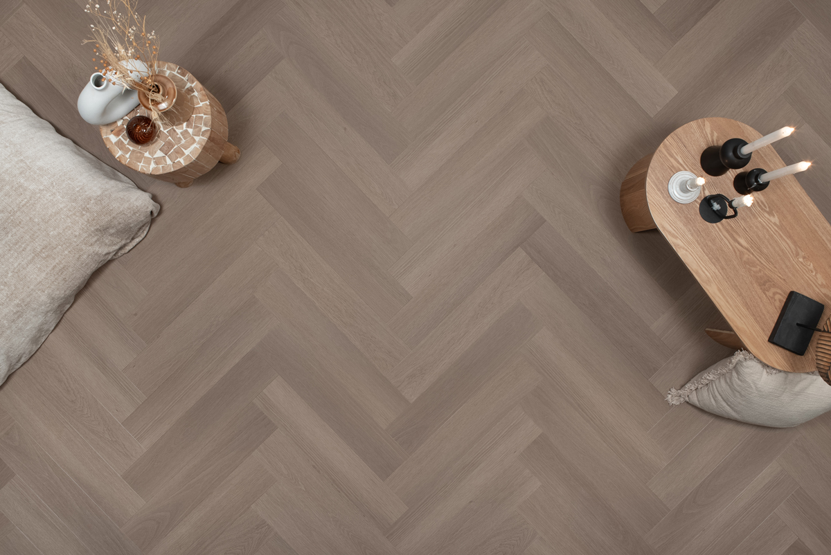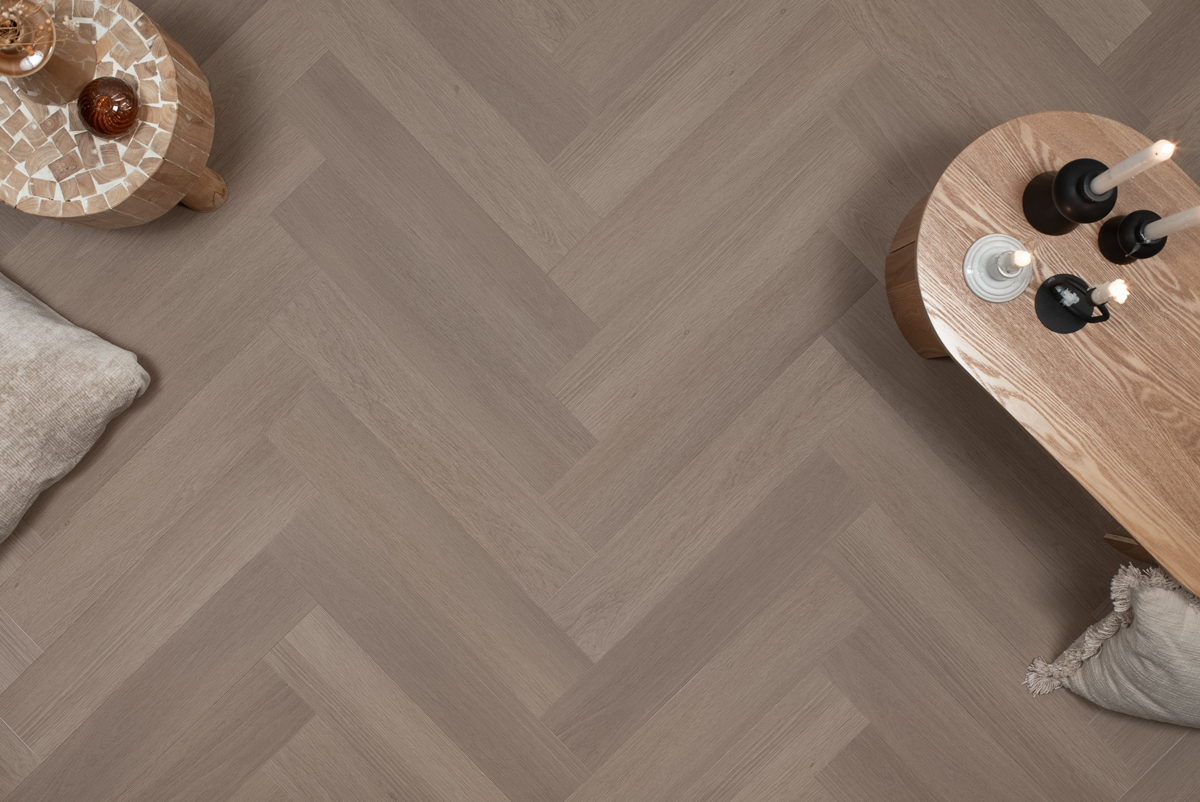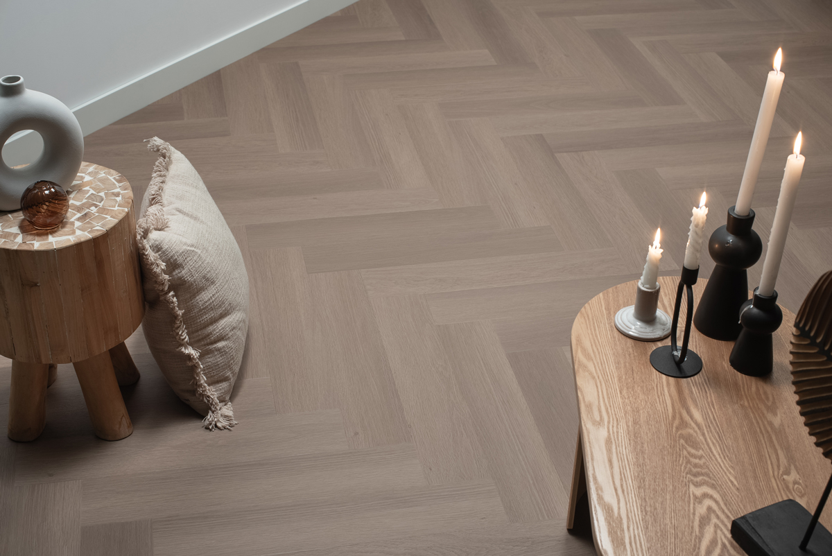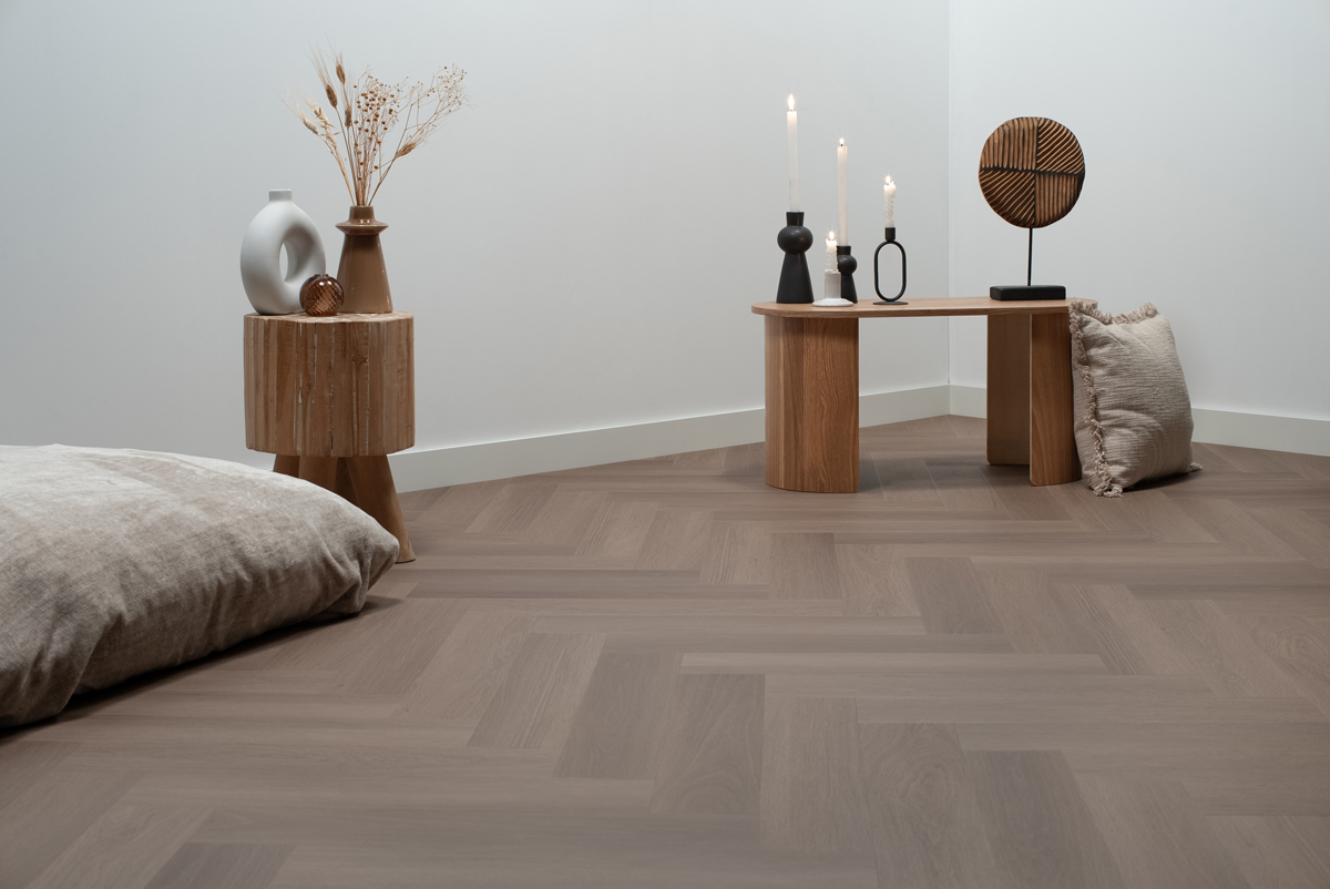 Dreaming of a vinyl herringbone floor and an oak design, without the hassle of extensive maintenance? The Floer Herringbone Vinyl in the colour Greige Oak combines a unique wood-look floor with the many advantages of vinyl. These floors are easy to clean, 100% water-resistant and extremely suitable for combining with underfloor heating and cooling. Take advantage of it with the Herringbone Vinyl collection - the ideal vinyl floor for larger households!