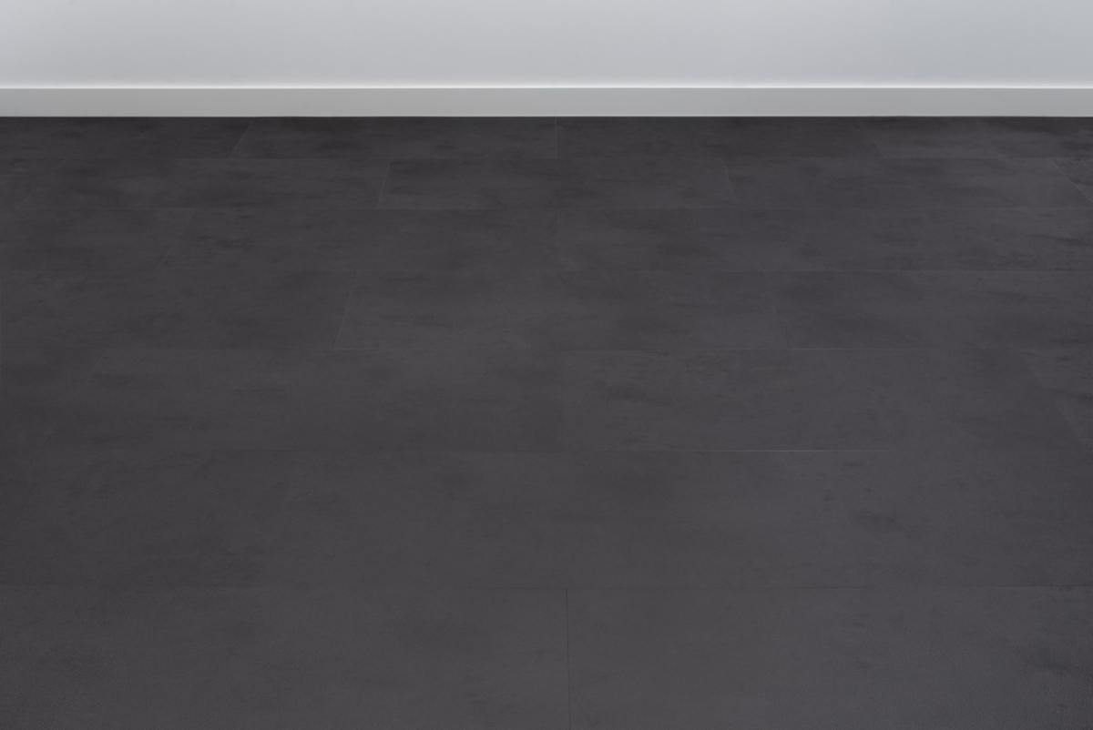 Strong, stable and beautiful to look at: Floer Tile Rigid Click Vinyl - Concrete Look Black. The luxurious stone structure floors from this rigid click vinyl collection consist of tiles with a size of 91,4 x 45,7 cm! Whereas dryback vinyl needs to be adhered to the subfloor, this Tile Rigid Click Vinyl is easy and quick to install yourself, thanks to the convenient Fastclick system. Thanks to the stable 'rigid mineral core', this rigid click vinyl is not only rock-solid, but also remains stable on the floor.