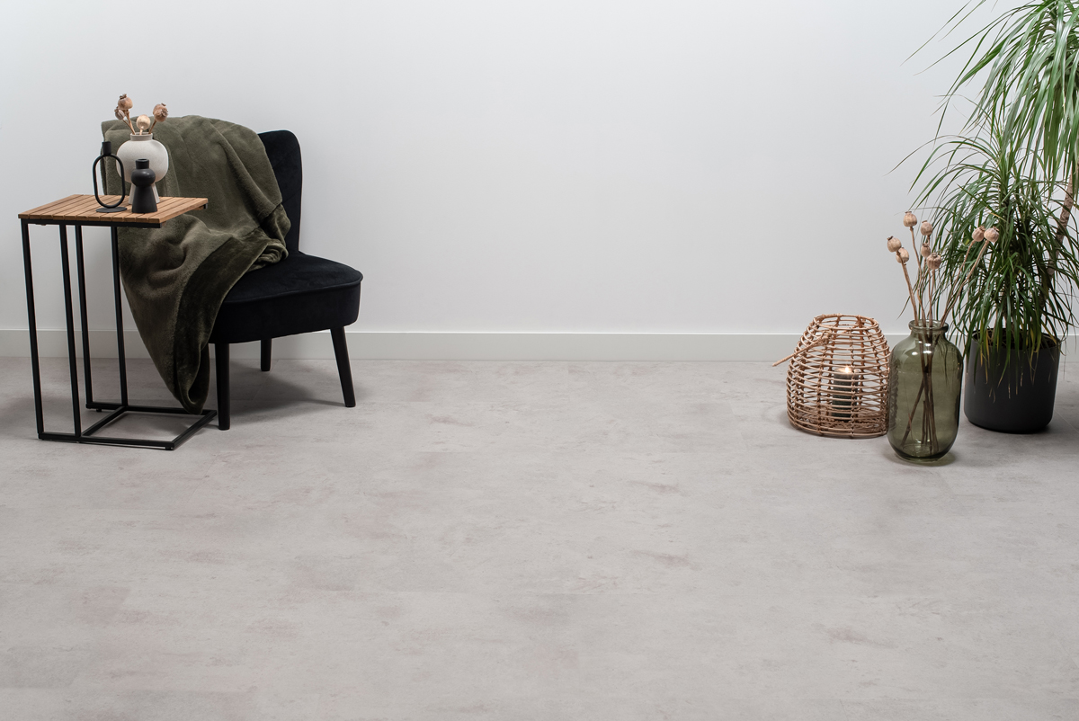 The Floer Tile Click Vinyl – Concrete Look Light Grey is perfect for those who love a rugged concrete look and enjoy getting hands-on with installation. This light grey floor combines the sleek appearance of concrete with the warm, comfortable feel of vinyl.