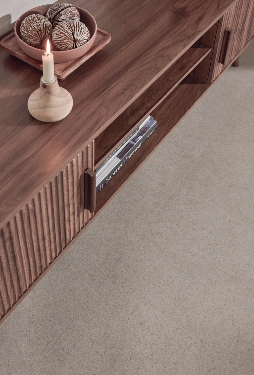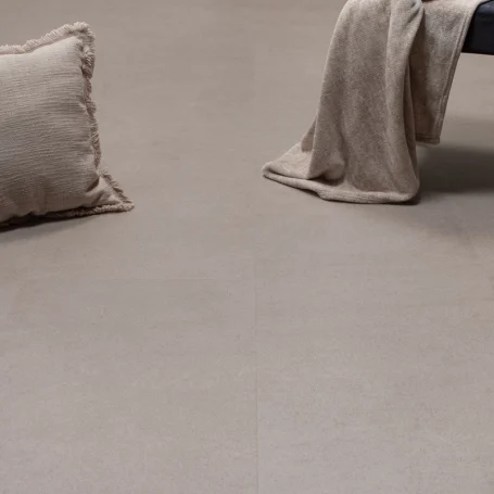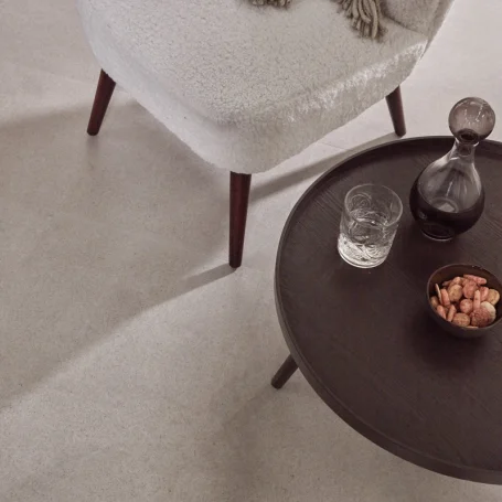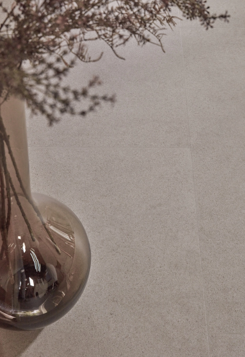 The Floer Tile Vinyl – Concrete Look Greige combines the bold, industrial character of concrete with the warm appearance of Vinyl. The subtle greige tone and unique MEGAMAT finish give this vinyl tile floor a cozy and inviting look. Thanks to its tactile texture and generous dimensions of 91.4 x 45.7 cm, the floor offers the authentic look of concrete tiles but with the convenience and durability of Floer Vinyl.