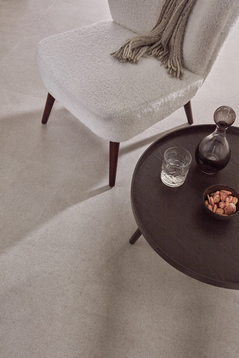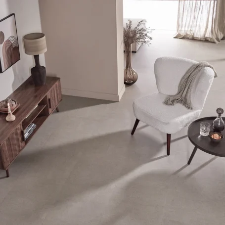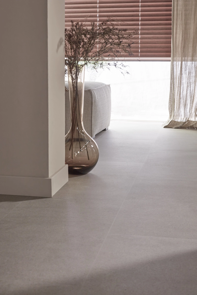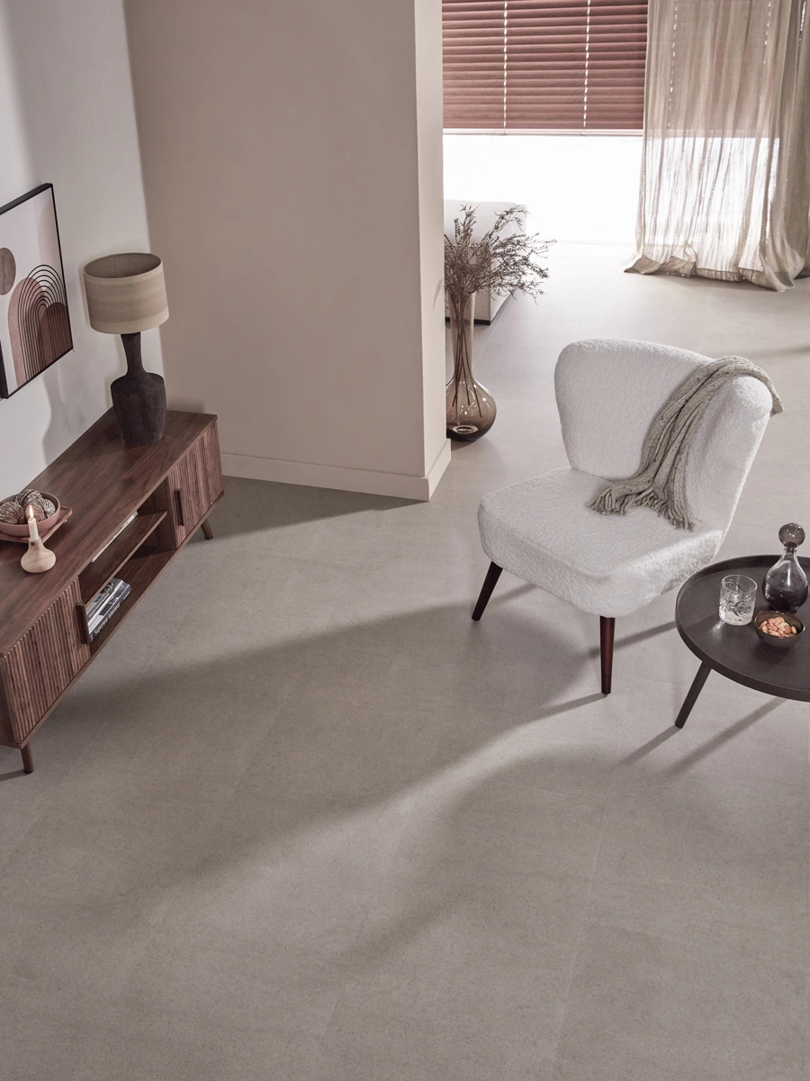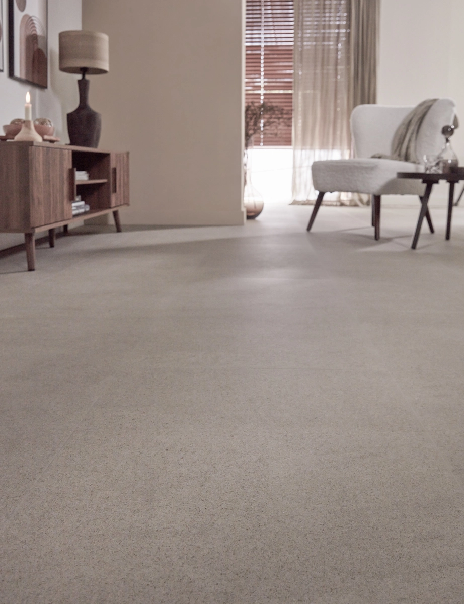 This Concrete Look Vinyl tile floor works perfectly with underfloor heating and cooling. The low thermal resistance of just 0.019 m²K/W ensures optimal heat conduction, allowing you to enjoy a comfortable and warm floor in winter. Whether your interior style is industrial, modern, or classic, this floor fits seamlessly into any space. The combination of an industrial concrete look and a warm greige tone creates a stylish and timeless atmosphere that suits various design styles.